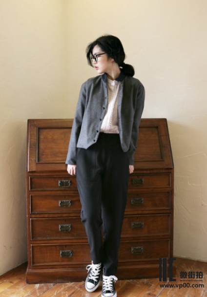 开衫白衬衫加上阔脚裤,给人一种既干净又休闲随意的感觉,配上舒适的帆布鞋让人感觉十分舒服。